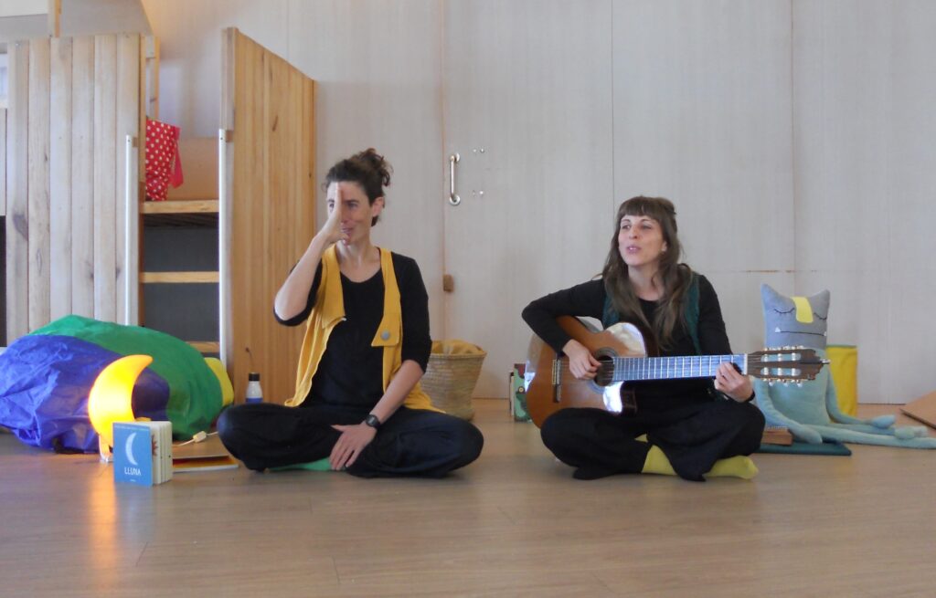 DORMIR, SOMNIAR, JUGAR és un espectacle de contes, música i poesia adreçada a nadons de 0 a 3 anys, de la mà de Cristina Martínez (Peripècia) i Laura Campello.